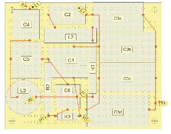 Seite 47: Der Lageplan für die Zweiweg-Frequenzweiche des Bauvorschlags “Dschinn” wies eine