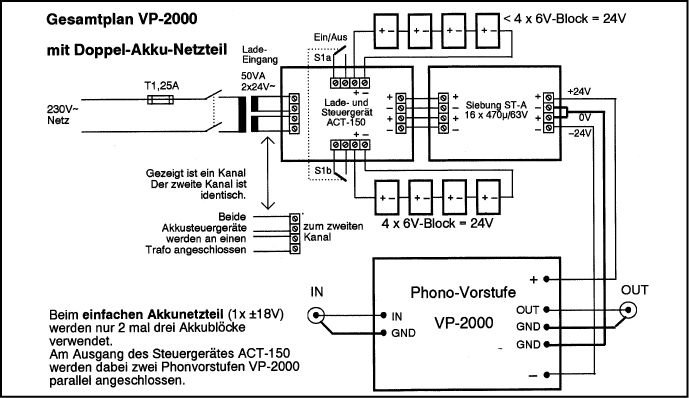 Seite 47: Entgegen dem Schaltbild unten rechts befindet sich im Akku-Netzteil des Thel'schen Phono-Vorverstärkers kein Netzfilter - es hätte dort auch keine