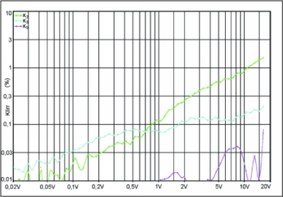 der Signalspannung. Hier ist sie, gemessen bei 2 kHz: Dieser Hochtöner überzeugt mit bemerkenswert niedrigen Verzerrungen, selbst bei extremer Lautstärke. Auffällig ist der