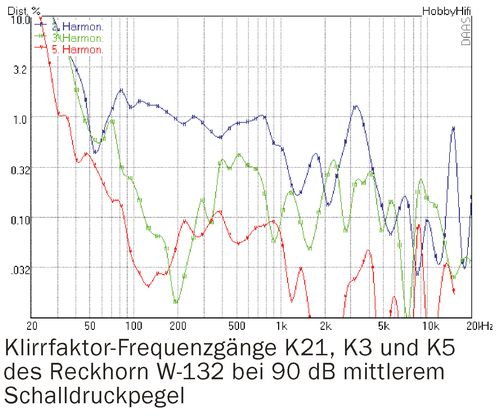 ergänzt. Beide Diagramme sind in 2/2020 auf S. 61 abgebildet, denn dort haben wir Koaxial-Chassis getrestet, darunter den Reckhorn-Koax. Hier noch einmal das korrekte Klirrdiagramm,