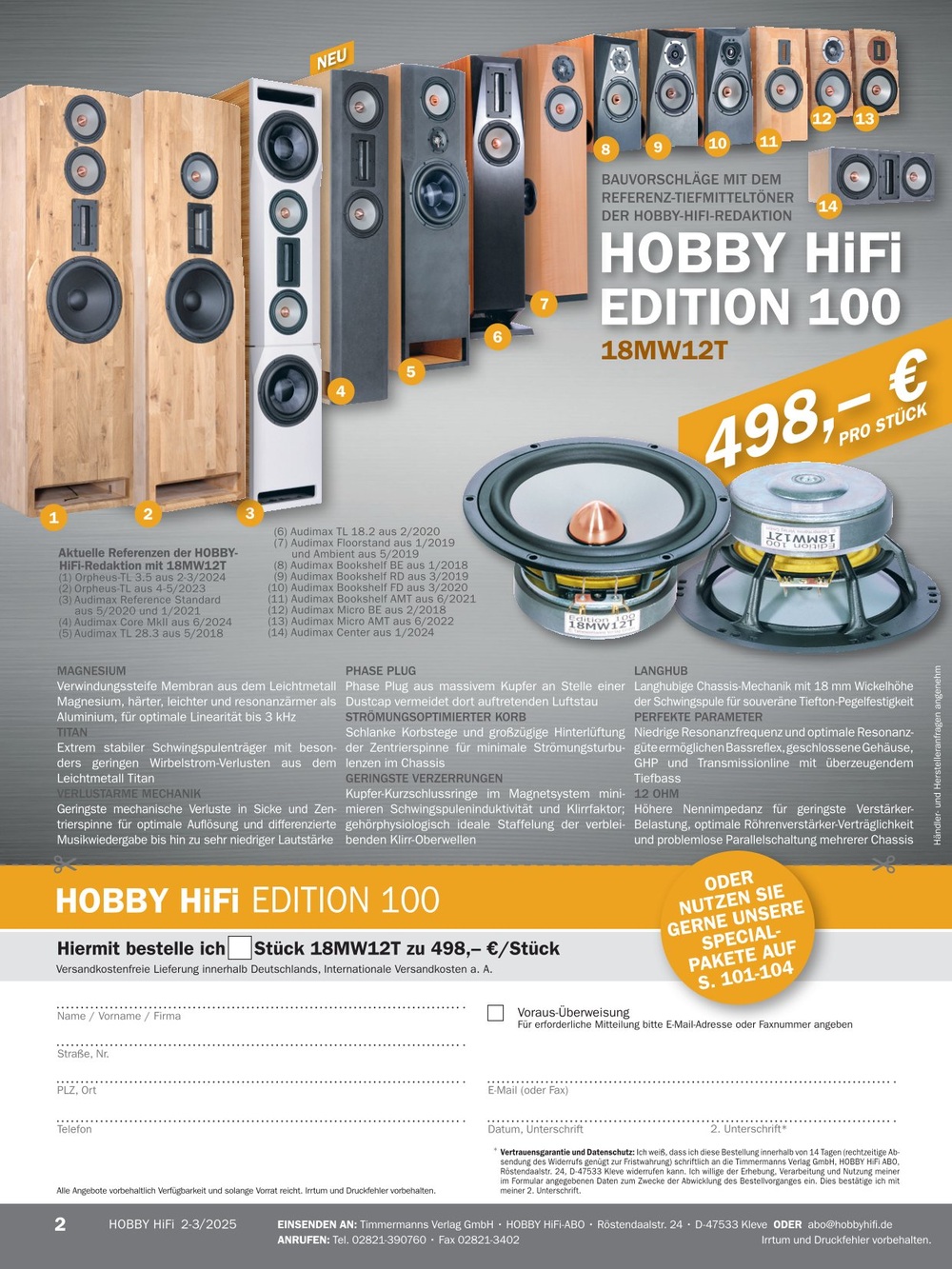 100". Den adäquaten Hochtöner haben wir ebenfalls gefunden, und der erste Bauvorschlag ist fertiggestellt (s. HOBBY HiFi 1/2018, S. 8 ff.).